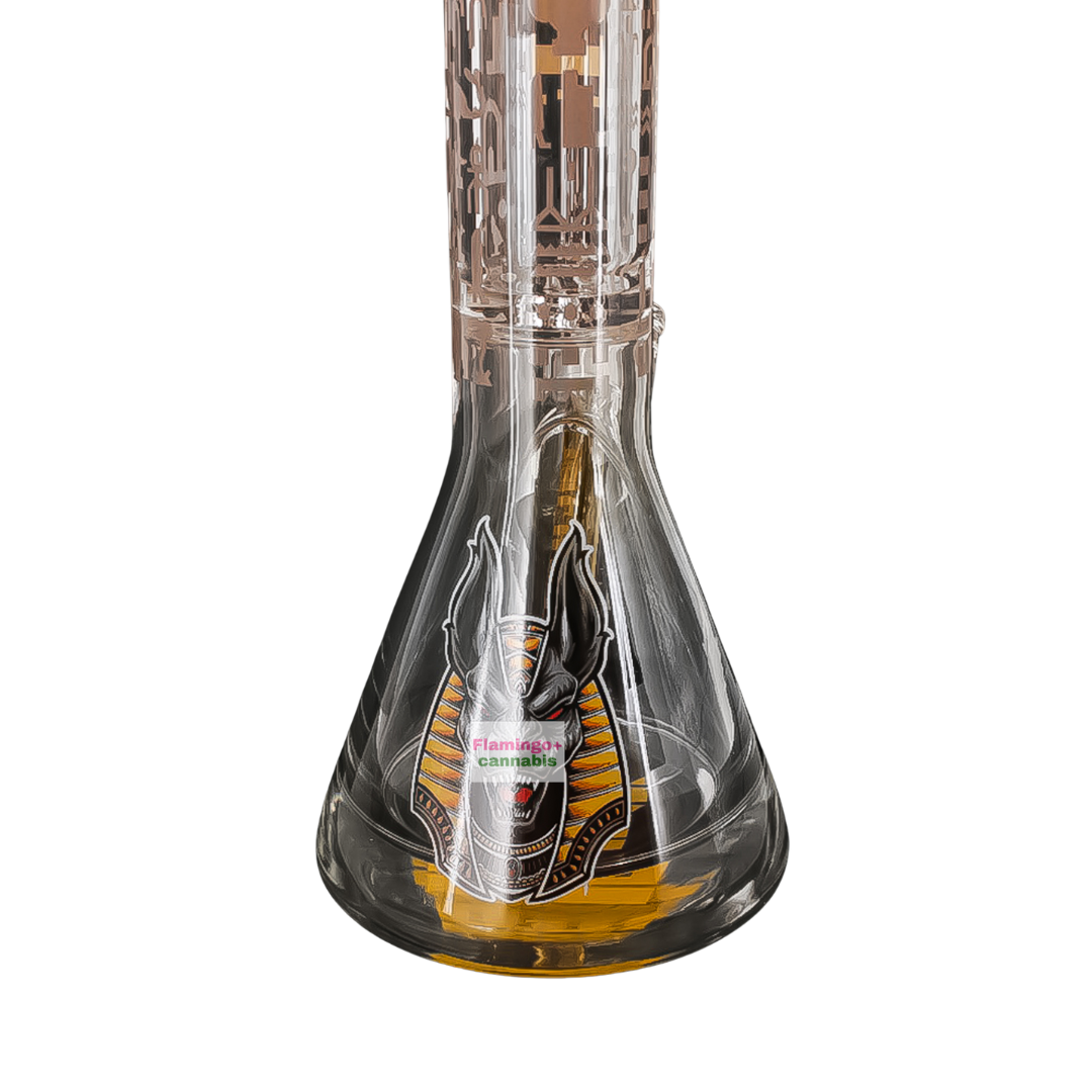 Channel ancient power and modern performance with the Castle Glassworks 18" Anubis 9mm Beaker Bong, a commanding centerpiece built for smokers who want maximum smoothness, durability, and unmistakable style. Standing tall at 18 inches, this beaker delivers deep, flowing water function that cools each hit like a cascading waterfall—resulting in exceptionally smooth, consistent pulls every session. Whether you’re posted up at home or packing it along for a weekend escape, this bong is designed to perform flawlessly wherever the journey takes you.