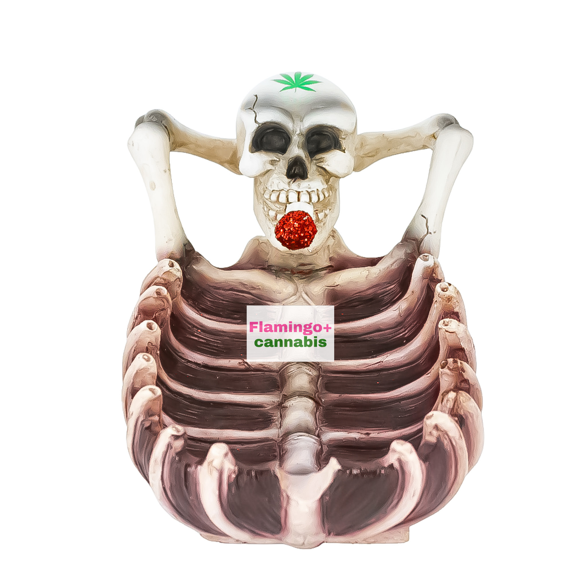 The Fantasy Gifts Shmokin Skeleton Ashtray looks like it’s already kicked back and sparked up before you even arrive. With hands behind its head and a relaxed grin, this skeleton brings pure “no worries” energy to your setup. The bold ribcage design doubles as a deep, functional ashtray while making a serious visual statement.