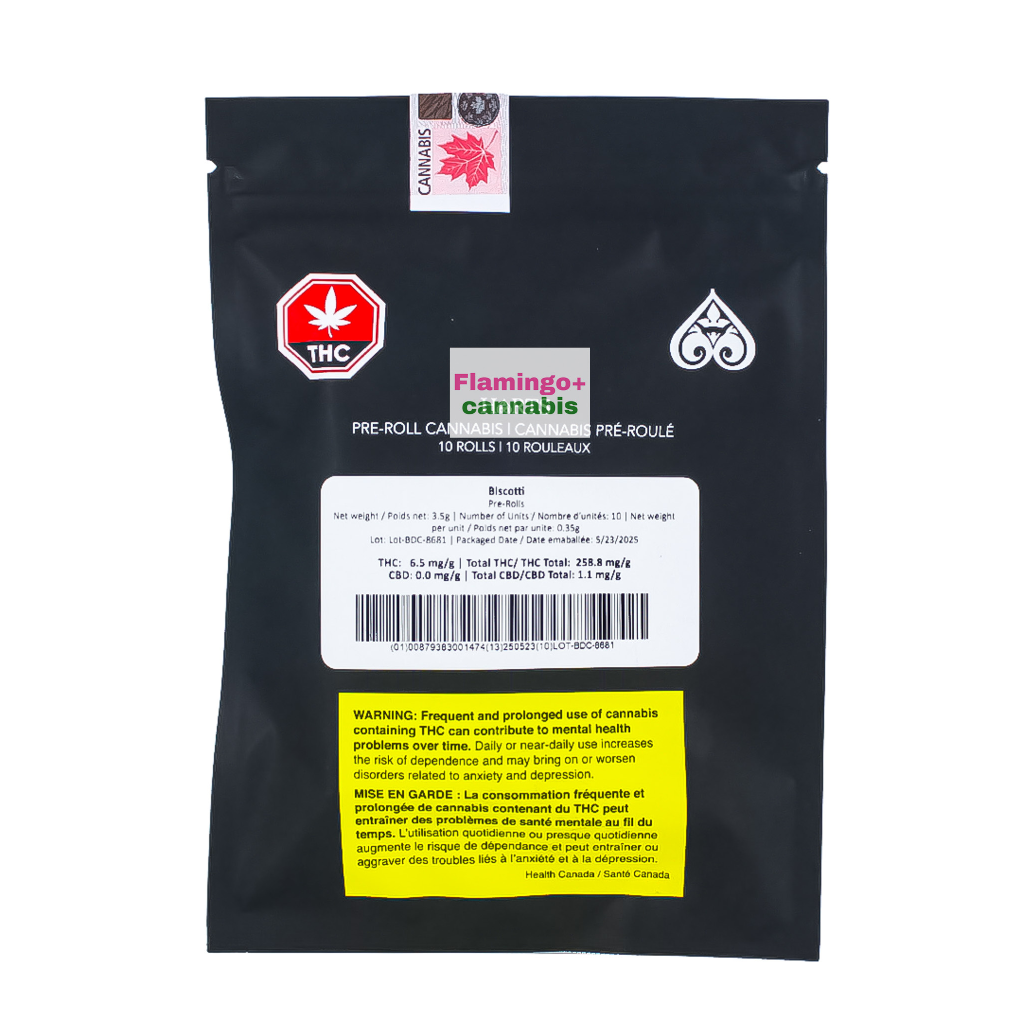 The flavour profile is where Biscotti truly shines. Expect flowery citrus notes upfront, followed by sweet cookie dough richness, and finished with a hoppy, peppery tartness that keeps each draw interesting and full-bodied. Using state-of-the-art rolling technology, HARTS pre-rolls are machine-rolled and hand-packed to ensure uniform burns and dependable quality. Wrapped in slow-burning hemp paper and finished with a biodegradable mouthpiece, these cig-style pre-rolls are designed to preserve flavour while delivering a clean, enjoyable session. If you’re looking for premium hybrid pre-rolls that combine craftsmanship, flavour, and consistency, Biscotti absolutely delivers. Shop now at Flamingo Plus for the best prices in Winnipeg, Manitoba.