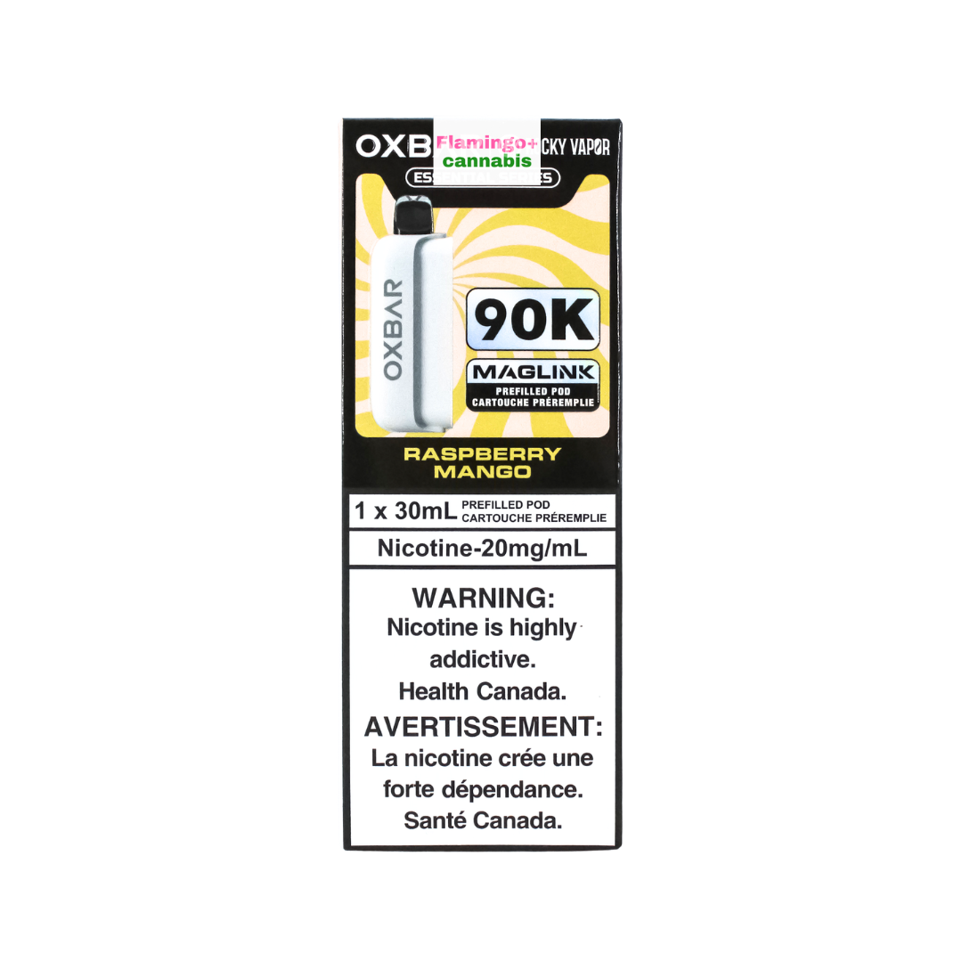 Rocky Vapor x OXBAR MAGLINK 90K Puff Pre-Filled Pod – Raspberry Mango delivers a vibrant tropical fruit experience built for extended sessions. The inhale opens with juicy mango notes that feel sweet, rounded, and rich, creating a full-bodied tropical base right from the first draw.